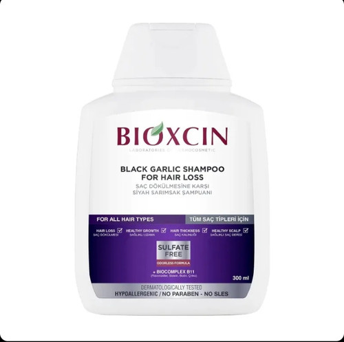 شامپو بدون سولفات بیوکسین سیر سیاه با خاصیت ضد ریزش قدرتمند حجم 300 میل