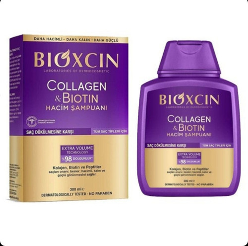 شامپو بیوکسین Bioxcin حجم دهنده و ضد ریزش مو حاوی کلاژن و بیوتین حجم 300 میل